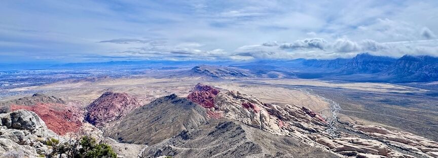 The landscape is classic Red Rock Canyon, towering sandstone cliffs, dry washes, and an endless stretch of desert views. As you climb, you’ll get glimpses of Turtlehead Peak towering ahead, a reminder of just how high you’re going. Once you reach the ridgeline, the final push to the summit is steep and exposed, but the reward is a breathtaking 360-degree view that stretches for miles.