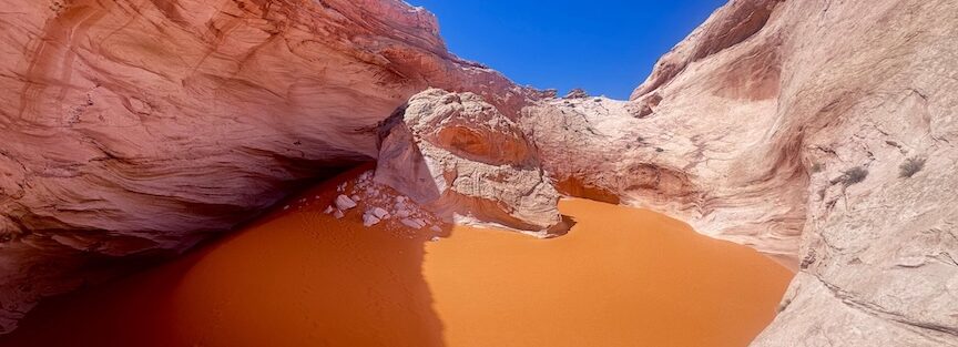 If you’re hunting for something totally bizarre and totally unforgettable, the Cosmic Ashtray is it. Located deep in the slickrock backcountry outside Escalante, Utah, this giant orange crater looks like something straight out of a Martian sci-fi movie. It’s officially called the “Cosmic Ashtray,” but some folks know it as the Volcano. Either way, you’re hiking into one of the weirdest, coolest natural formations in the Southwest.