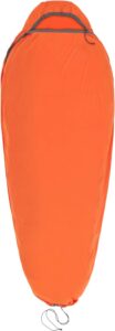 The liner is simpler to wash than a full sleeping bag, which helps my gear last longer. The mummy shape fits inside most sleeping bags and includes a drawcord hood.