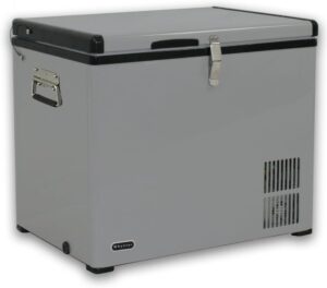 It comes in three sizes: 37QT, 48QT, and 58QT. Each one uses an aluminum-lined compressor and runs on 12/24V DC or 110-240V AC.